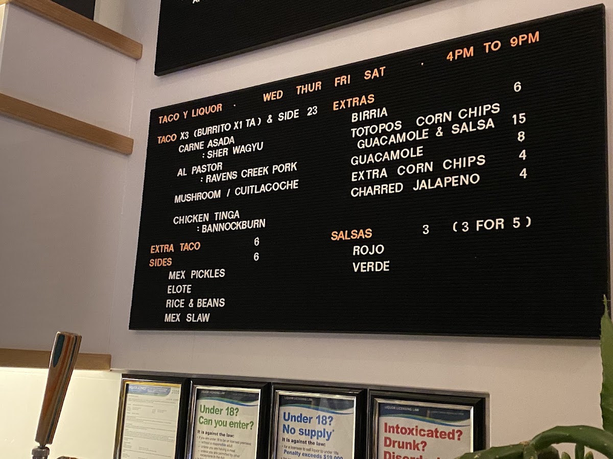 From a reviewer’s perspective, the menu at Tacos Y Liquor delivers a focused yet characterful snapshot of Mexican-inspired comfort food, where each item feels deliberately chosen to complement the restaurant’s bold, street-style identity. The Extras section stands out as a playground for customization and sharing: the rich, slow-cooked Birria adds depth and indulgence, while Totopos Corn Chips and Extra Corn Chips provide the perfect crunchy base for dipping and snacking. Paired with Guacamole & Salsa Guacamole, these extras elevate the overall dining experience by encouraging a social, mix-and-match approach to the table. Moving beyond add-ons, the Others category rounds out the menu with flavors that balance heartiness and freshness. Al Pastor brings a classic, savory-sweet profile that feels authentic and satisfying, while Mushroom offers a welcome option for those seeking something lighter or plant-based without sacrificing taste. The tangy Mex Pickles cut through richer flavors, adding brightness and contrast, and Elote delivers that familiar street-corn comfort with a creamy, seasoned finish. To ground everything, Rice & Beans act as a dependable, comforting staple that ties the menu together. Overall, the menu may be concise, but it is cohesive and intentional, reflecting a restaurant that understands how thoughtful sides, extras, and core dishes can work together. As a conclusion to the menu experience, Tacos Y Liquor proves that variety does not have to mean excess; instead, it relies on well-chosen items, bold flavors, and flexible combinations to leave a lasting impression on diners in Geelong.